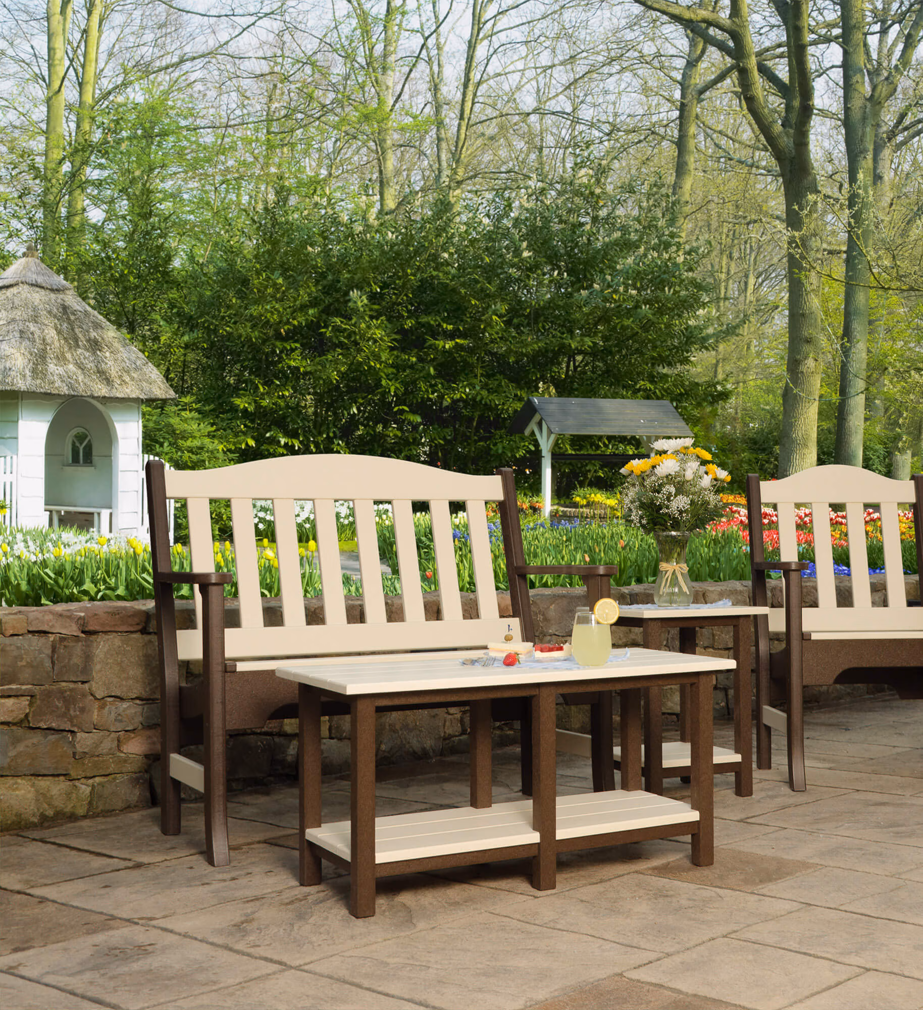 The Avonlea Garden collection features everything you need to complete your garden or patio furniture set. Inspired by summers on the north shore, the Avonlea Garden furniture is styled simply and artistically to lend any outdoor home or garden area a classic charm. Designed with relaxation in mind, the outside patio chairs and benches feature contoured seats for maximum comfort. The coffee tables and side tables are handcrafted to pair perfectly with the seating options. To complete your garden furniture’s look, you can choose pillows and cushions to match your furniture colors. A type of furniture that can bring together themes of garden, outdoor seating and dining areas, the Avonlea collection fits well in any natural setting.