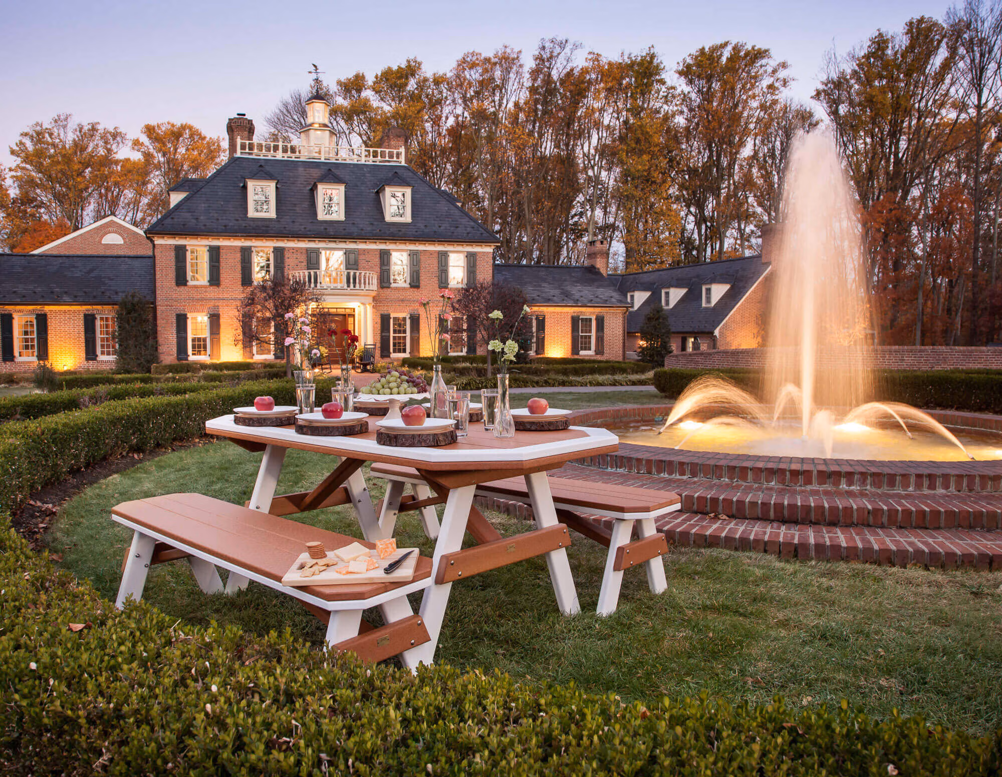 A great look for back porches and decks, the Garden design is simple, pleasing and perfect for backyard BBQ’s, birthday parties and summer events. A no-frills set that is attractive in design, this outside garden furniture is also available with various seating options and many colors to customize to personal taste. Get the best backyard patio furniture available. Our poly garden furniture resists rot and deterioration, giving you years of maintenance free enjoyment.