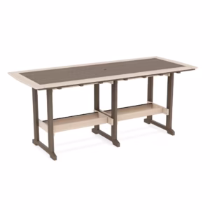 A fusion of bar table and regular dining size, the Keystone collection features a mid-level table and comfortable chairs with the option for chair arms or cushions in many different colors. Ideal for casual outdoor spaces, the Keystone design is the perfect addition to an outdoor kitchen, grill area or poolside table.
