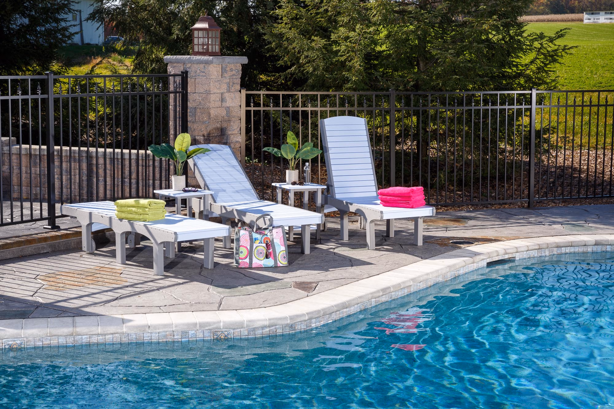 Bask in style with the SunSurf Chaise Lounge. This poly lumber chaise lounge is the perfect addition to your poolside furniture collection. What is a chaise lounge? The chaise lounge also known as a patio lounger is a stretched out chair that is long enough to support the legs. While commonly found indoors, chaise lounges have found a new life as outdoor furniture pieces. Handcrafted in Lancaster County, Pennsylvania, our outdoor chaise lounge features an adjustable back. With five different back positions, you can read a book while drinking lemonade or lay flat to get a golden tan. Ready to move into the shade? No problem! Simply pick up the front and wheel the lounge to wherever you want to go. Finish off your outdoor pool furniture set with an Avonlea Garden side table.