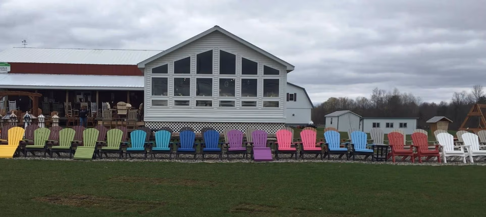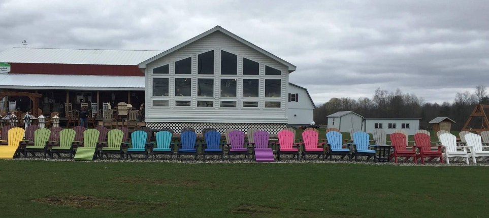 Imagine a kaleidoscope of colors at your fingertips. Deep reds. Golden yellows. Brilliant blues. With 28 poly colors, you can two-tone your poly furniture. Pair your wood colors with your choice of fabric from our 200+ options. That’s over 55,000 color combination possibilities.