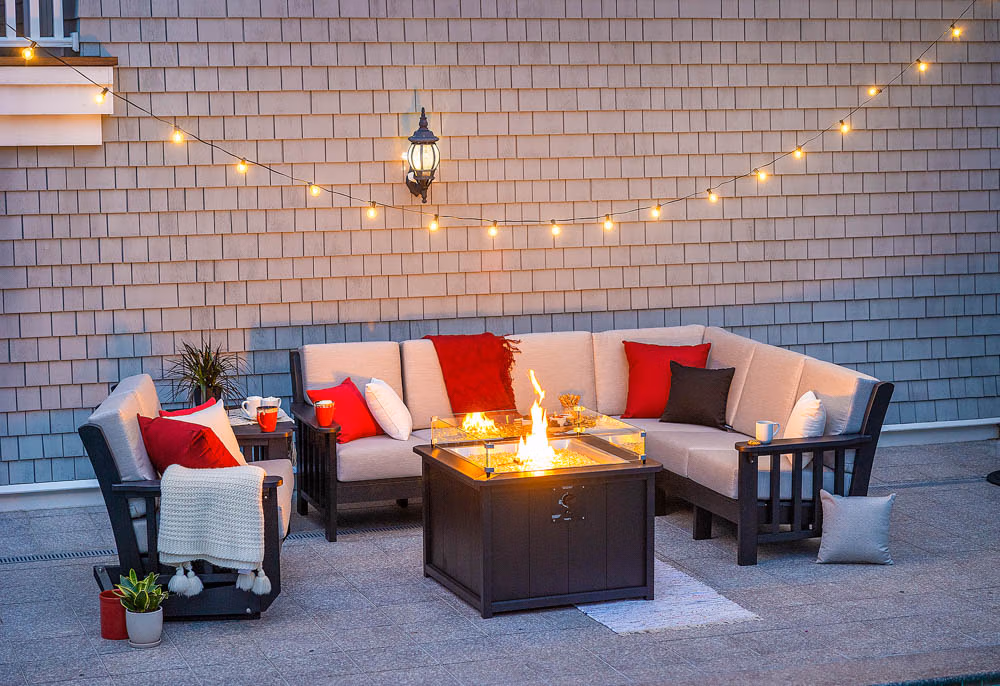 Firepits are great at bringing people together for great memories. Simply connect a 20-lb. propane tank or direct propane line. Included is a vinyl cover, as well as an opening for natural gas hookup. This size gives off approximately 79,000 BTU of warmth. Customize yours by selecting up to 2 of Finch’s 28 poly colors to create hundreds of unique color combinations!