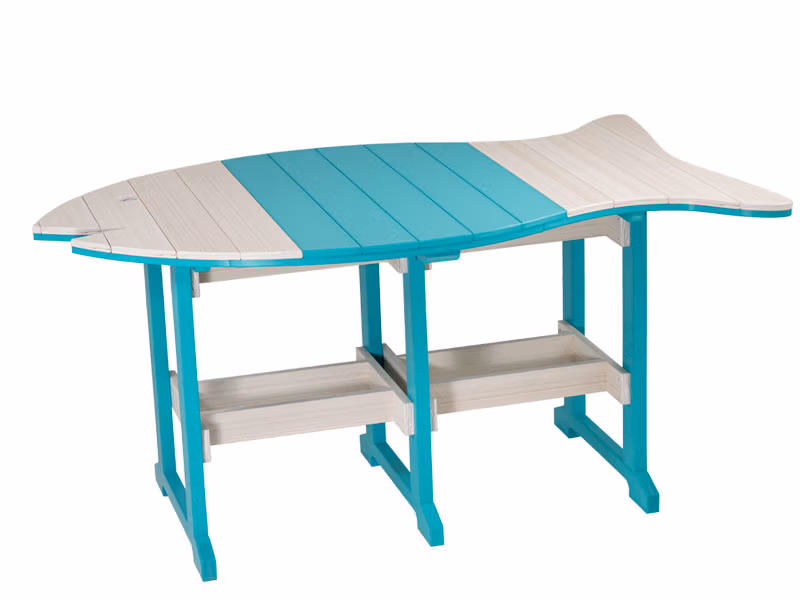 The Fish 45″ x 73″ gives you extra table space to entertain. The charming Fish design is the perfect complement for lakeside or seaside spaces, or anywhere you find yourself dreaming of the water! Combine it with any variety of the Wave Bar Chairs for an exotic saltwater aesthetic. Available in Dining, Counter, and Bar heights, this table comfortably fits 6-8 people. Customize yours by selecting up to 2 of Finch’s 28 poly colors to create hundreds of unique color combinations!