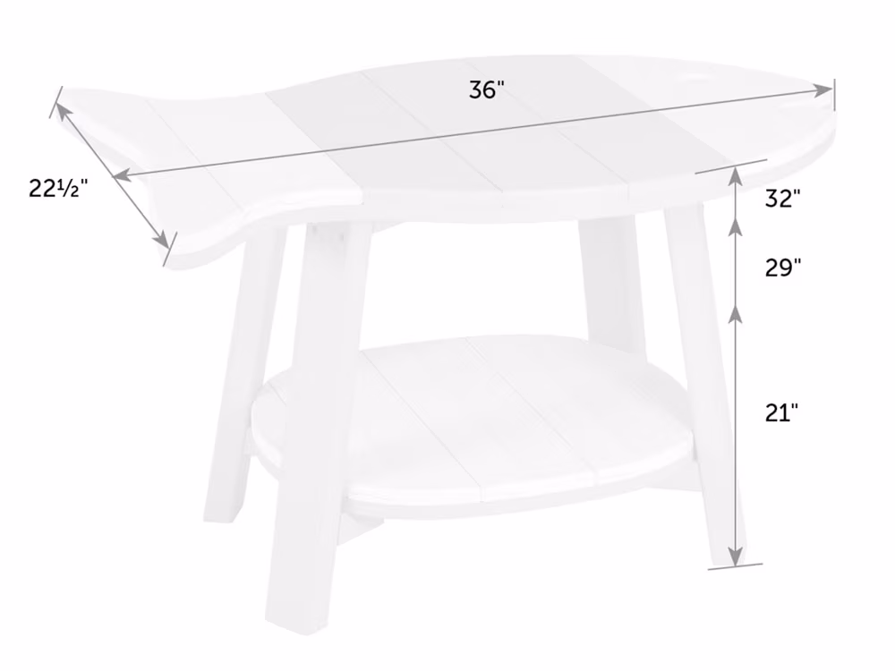 The Fish Bistro Table is slightly smaller than a conversation table, but it boasts the same handy, two-tiered design made from durable poly lumber. Cluster SeaAira Adirondacks around it for a quirky arrangement. Dining, counter, and bar heights are available. Customize yours by selecting up to 2 of Finch’s 28 poly colors to create hundreds of unique color combinations!