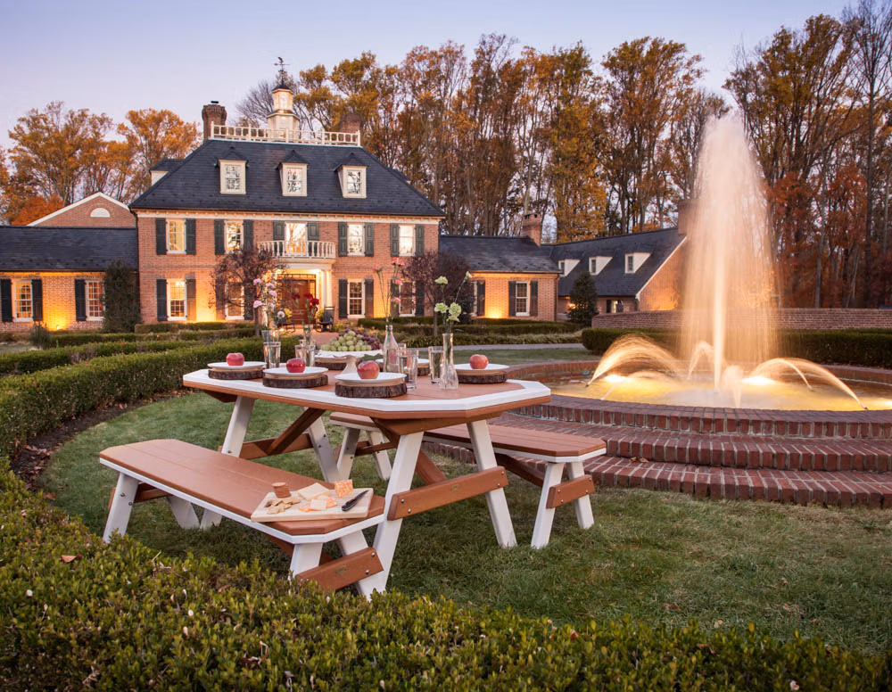 The triangular shape of the table supports, along with the angled corners of the tabletop, lend a nostalgic feel to this classy design. The border around the edge of this dining table gives it a tailored look and allows you to showcase a two-toned theme on the tabletop itself. Crafted from poly lumber, it’s weather-resistant and easy to clean making it an ideal choice for outdoor dining or as a statement piece for your garden.Comfortably seats 4-6 people. Customize yours by selecting up to 2 of Finch’s 28 poly colors to create hundreds of unique color combinations!