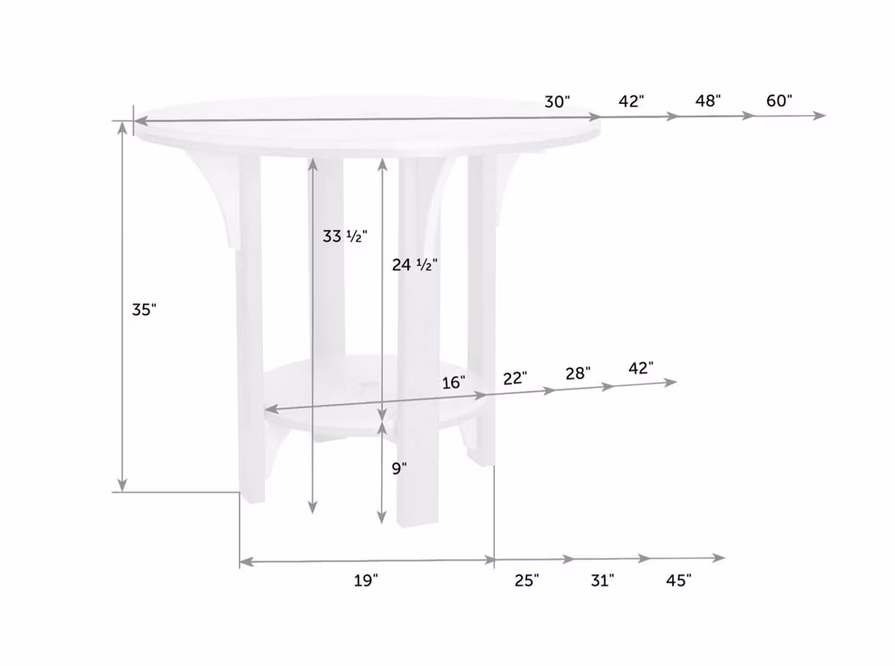 The Great Bay Round Bar Table combines Great Bay’s spacious and welcoming design elements with a simple round tabletop. Round tabletops help everybody feel included and invite good conversation. Its poly construction makes it durable and weather-resistant. Sizes including 30″, 42″, 48″ and 60″ diameters comfortably seat 2-8 people. Pairs perfectly with bar stools and bar height chairs. Customize yours by selecting up to 2 of Finch’s 28 poly colors to create hundreds of unique color combinations!