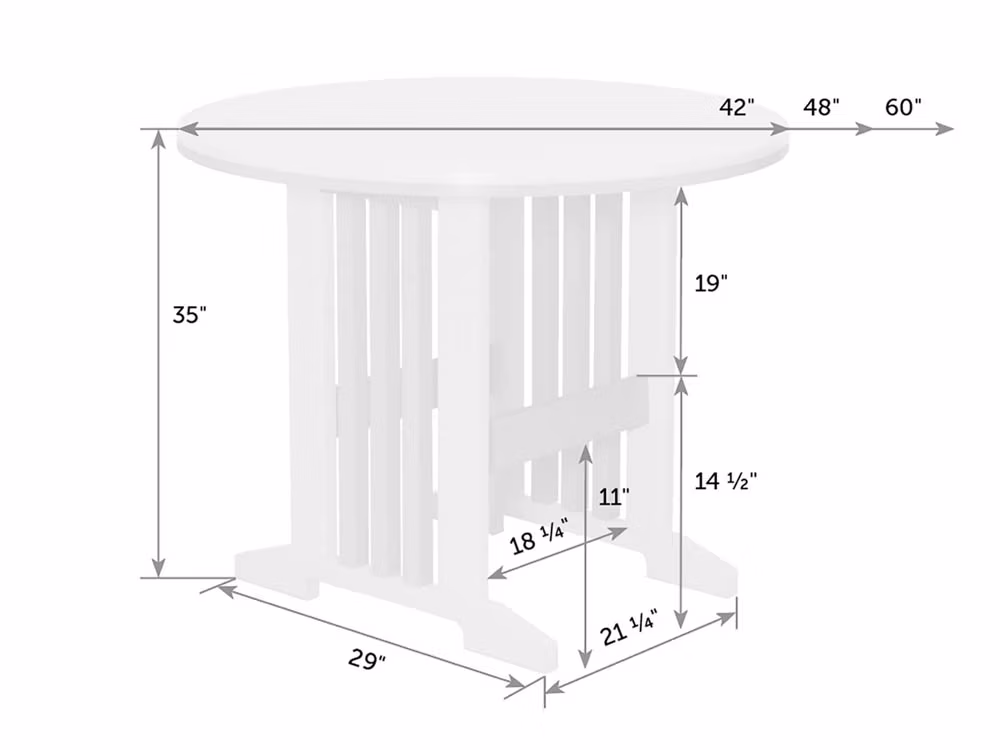 | 60" | 60"w x 60"d x 35"h | 180 lbs |