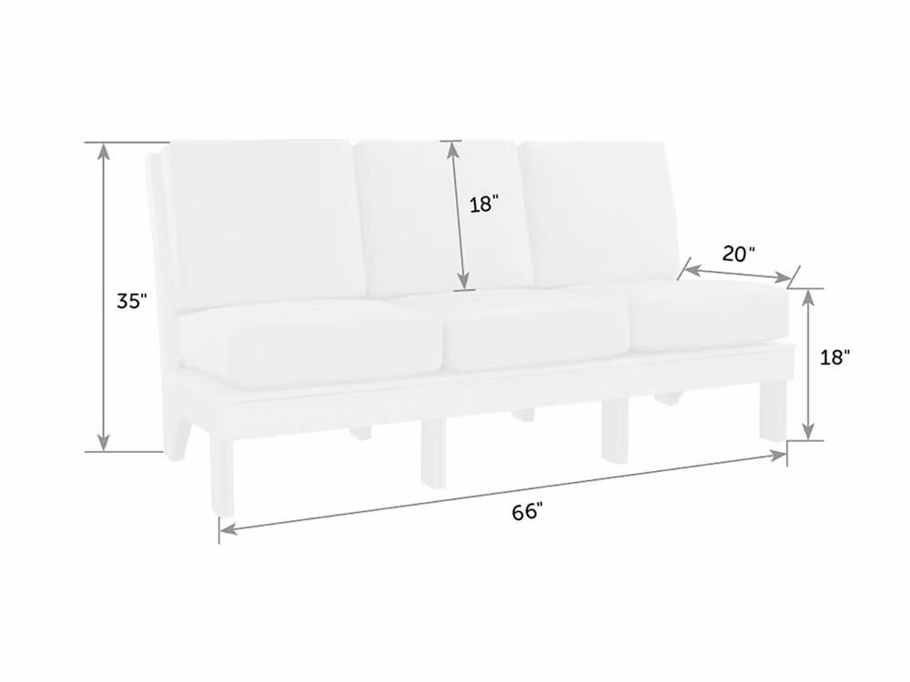 The Mission Center Sofa set piece is designed to seat many people while saving on space, and meant to pair with an assortment of Mission Deep seating set pieces including loveseat, sofa, single-chair, and corner pieces; making it easy to scale your sofa to the optimal size. Made from weather-resistant poly material, it’s both durable and comfortable. Customize yours by selecting up to 2 of Finch’s 28 poly colors to create hundreds of unique color combinations!