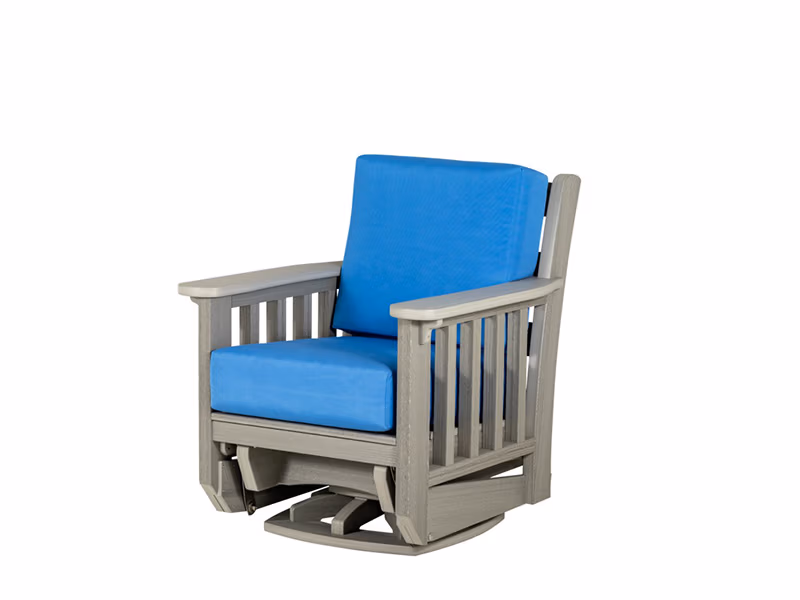 Glide in more than one direction with this Mission Glider. If you’ve got too much energy to sit still, the swivel feature allows you to stay active and take in the world with a 360° view. Exquisitely comfortable with a smooth glide, this chair allows you to pivot for better conversations or simply to enjoy the sights around you. Customize yours by selecting up to 2 of Finch’s 28 poly colors to create hundreds of unique color combinations!