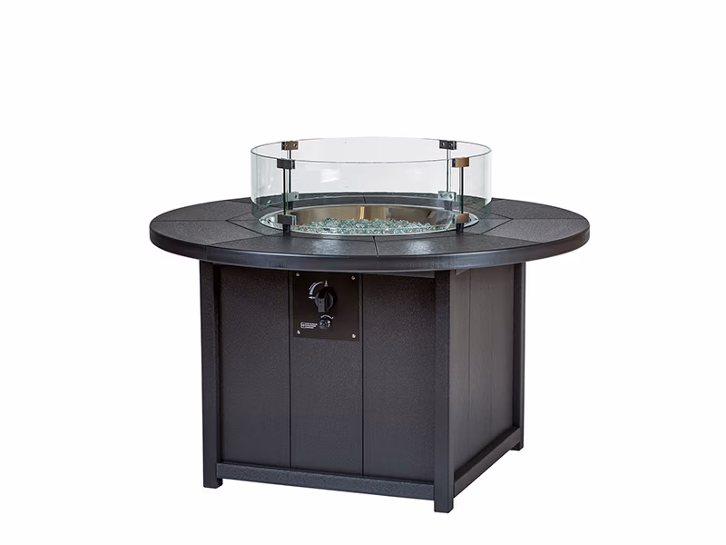 This round fire pit makes it easy to gather around for toasty fires and warm conversation. Simply connect a 20-lb. propane tank or direct propane line. Included is a vinyl cover, as well as an orifice for natural gas hookup. Available in 42″ and 48″ diameters, which give off 55,000 BTU of warmth. Customize yours by selecting up to 2 of Finch’s 28 poly colors to create hundreds of unique color combinations!