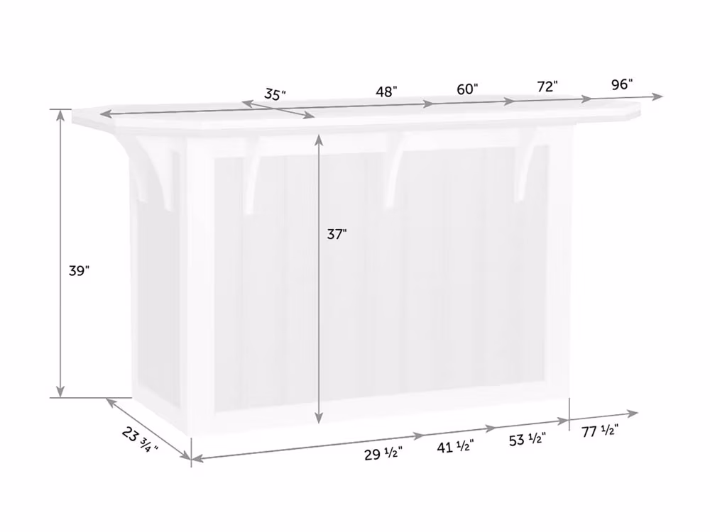 | 35x96 | 96"w x 35"d x 39"h | 425 lbs |