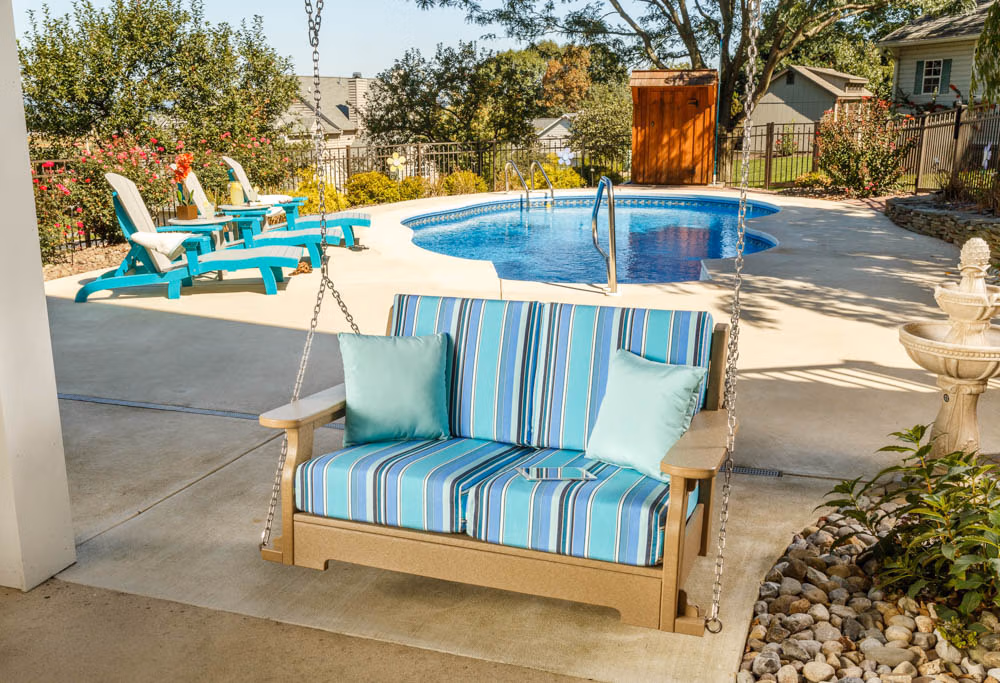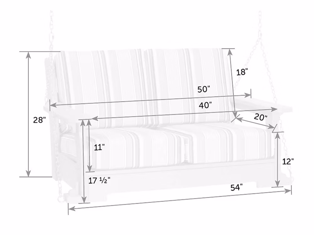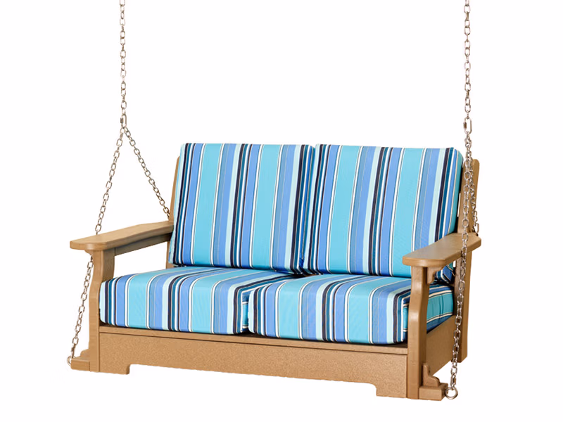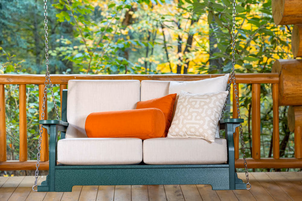 The Van Buren Swing is a deluxe, weather-resistant version of your favorite classic porch swing. While away an afternoon listening to the birds while taking a gentle ride in deep comfort. Comfortably seats 2. Chains included. Customize yours by selecting up to 2 of Finch’s 28 poly colors to create hundreds of unique color combinations!
