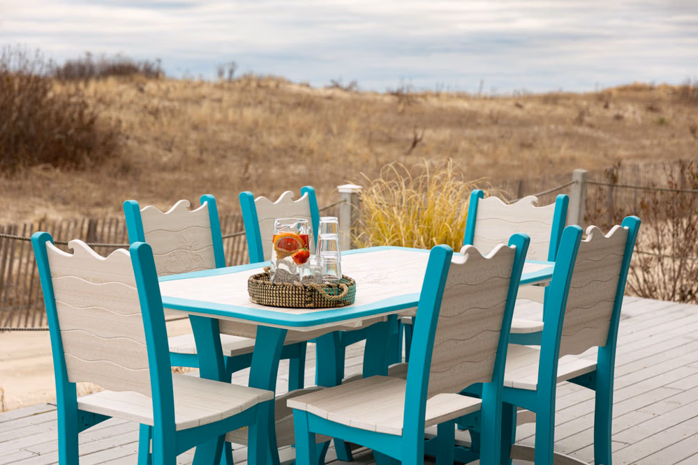 The Wave Dining Chair fleshes out the ocean theme with wave outlines and ripply lines in the back and leg supports. Crafted from durable poly lumber, it’s built to handle the elements, providing long-lasting style and comfort. Combine it with the Wave or the Wave Surfboard Dining Table. Customize yours by selecting up to 2 of Finch’s 28 poly colors to create hundreds of unique color combinations!